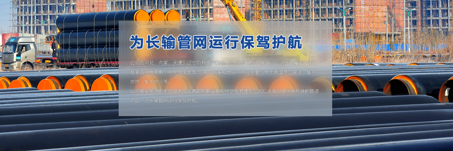 公司在河北、內(nèi)蒙、天津、遼寧均有生產(chǎn)基地,總占地面積500余畝。公司產(chǎn)品覆蓋中國以及蒙古、俄羅斯、中東、南非等20 多個國家和地區(qū),產(chǎn)品主要應用于高溫蒸汽輸送、集中供熱、集中供冷等。